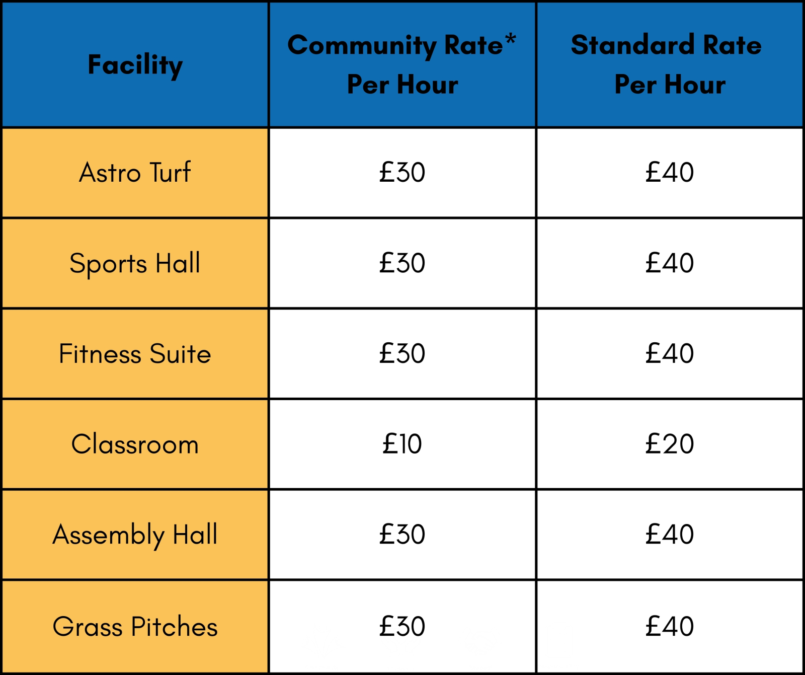 A discount may apply due to VAT exemption. This is for sports facilities only. The facilities must be booked out to a school, club, association, or an organisation representing affiliated clubs or constituent associations, such as a local league. VAT exemption does not apply to commercial sports tuition.
