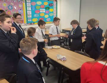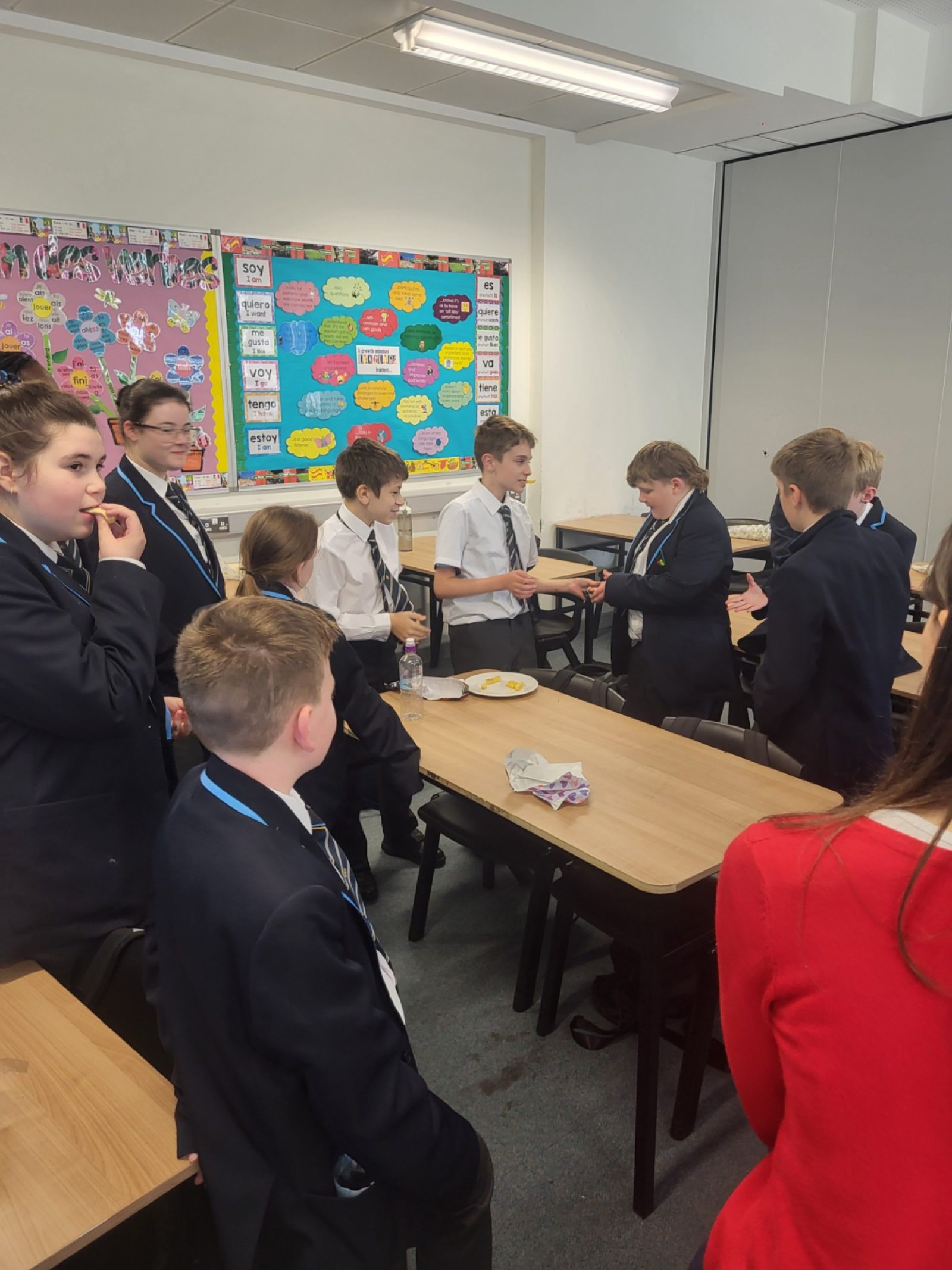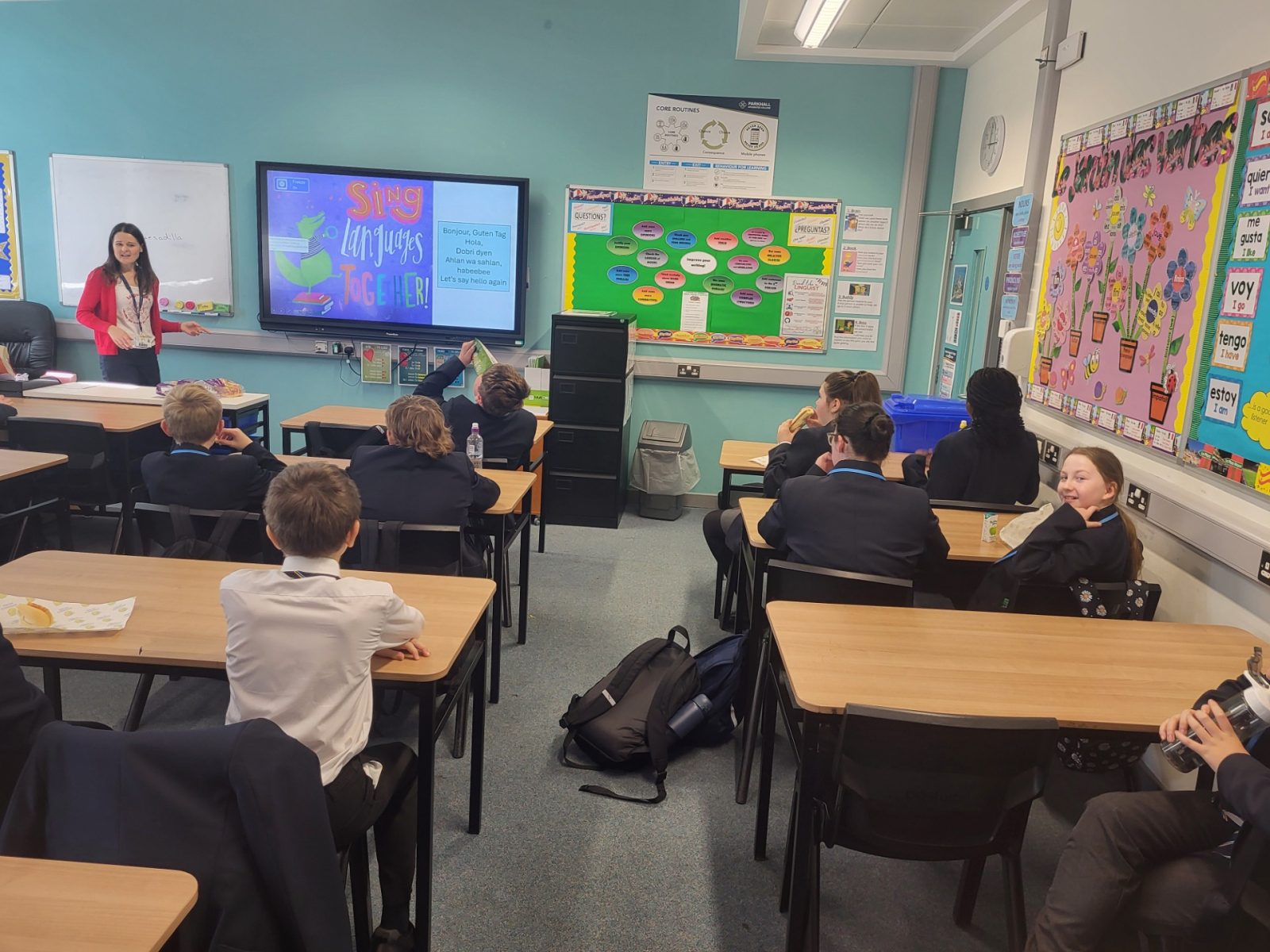 At lunch time, Year 8 came together to celebrate the day. They had fun singing songs in different languages, playing pass the parcel with a twist and eating croissants. Earlier in the week MFL craft at Calm club was also a hit!
