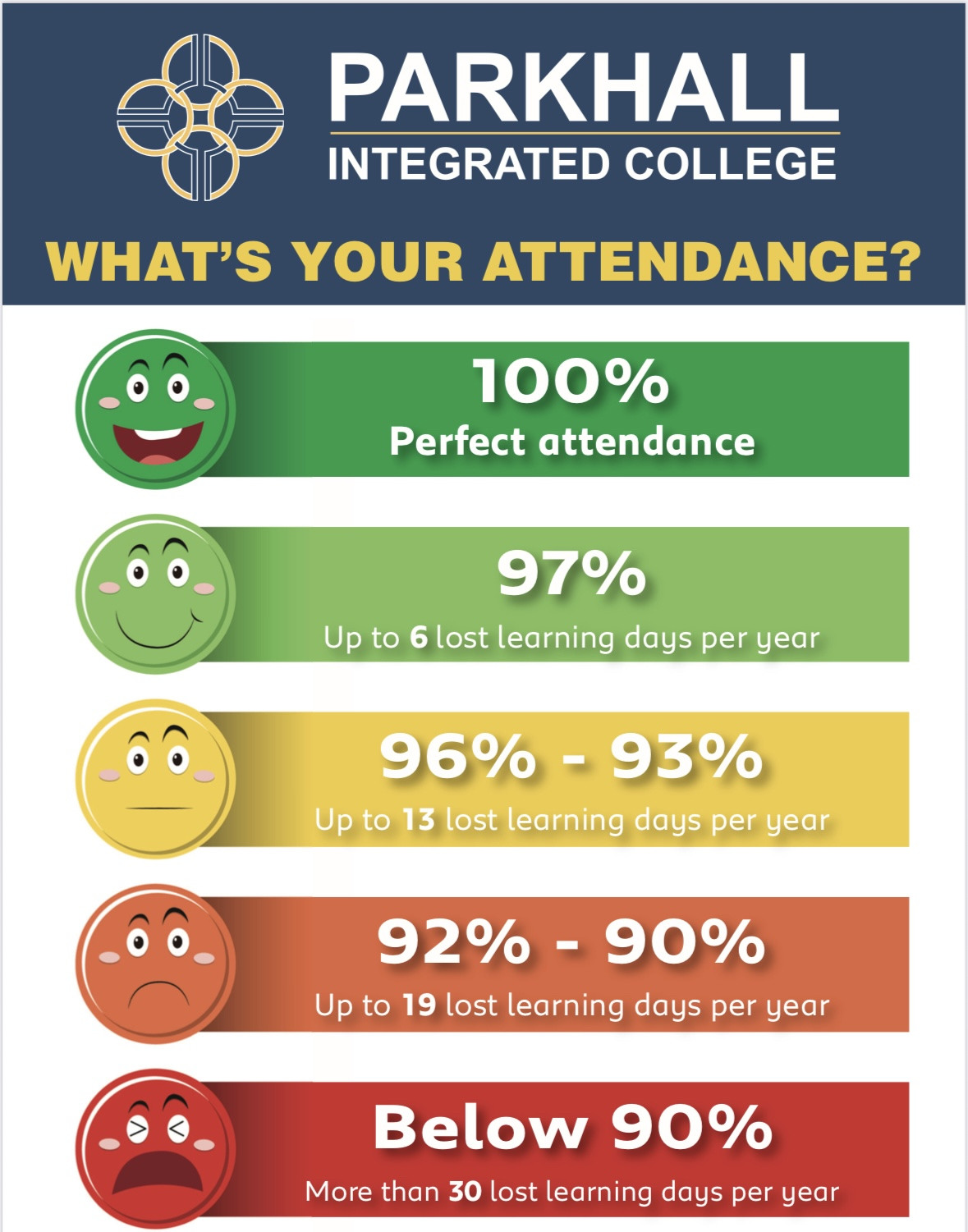 At Parkhall Integrated College, we believe that regular attendance is crucial for the success and well-being of our students. We are dedicated to creating an inclusive, caring learning environment where every student feels valued and empowered to reach their full potential.